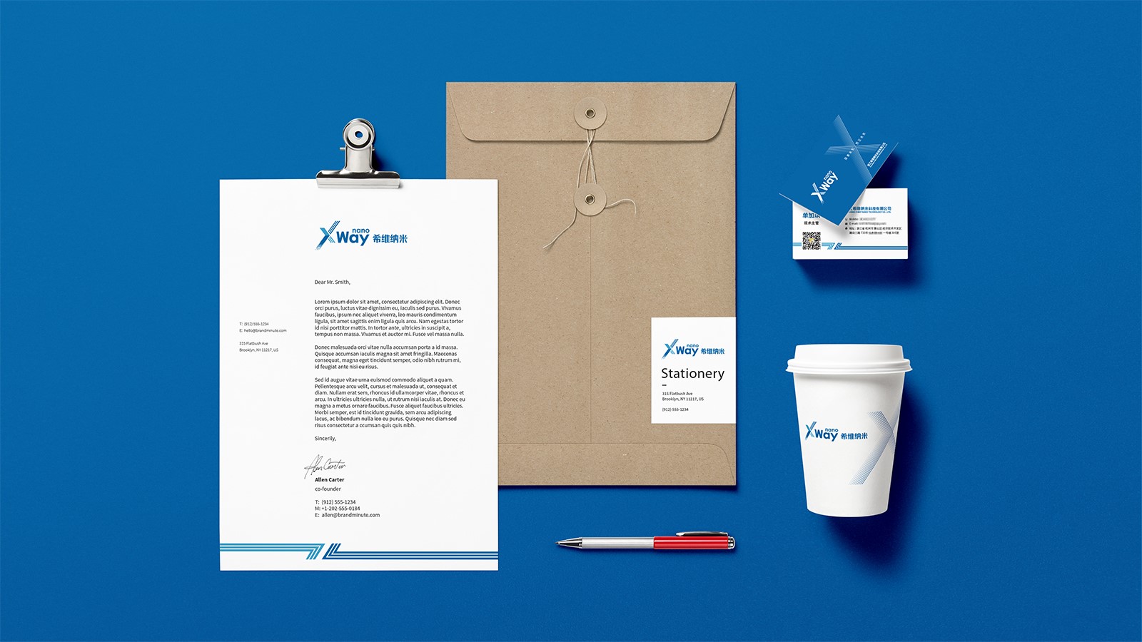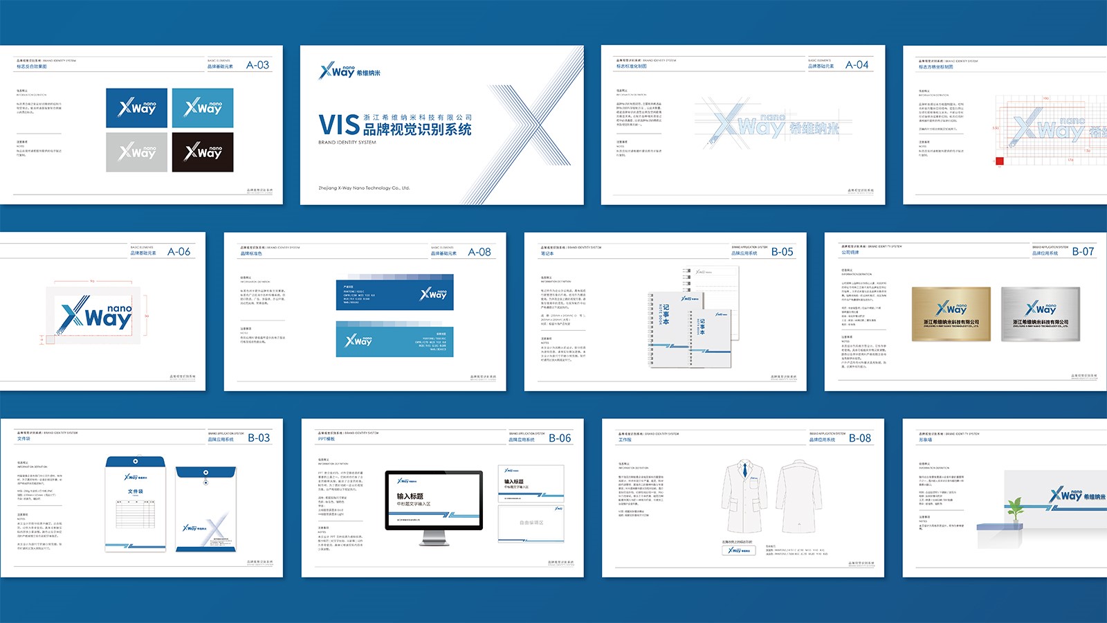 石特基于廣泛的市場調(diào)查和分析對希維納米科技進(jìn)行了品牌定位分析。石特緊跟設(shè)計(jì)潮流趨勢,大膽創(chuàng)新,對希維納米科技的logo進(jìn)行了創(chuàng)意設(shè)計(jì),依據(jù)企業(yè)的行業(yè)屬性及調(diào)性,采用中英文結(jié)合的形式將“X”“Way”“Nano”巧妙結(jié)合,利用公司名稱“希維”的諧音和“X”所代表的“無限可能”以及“Nano”所代表的“納米科技”這些含義,給品牌賦予“不走尋常路,勇于探索未知的科學(xué)精神”的內(nèi)涵,從而賦予企業(yè)的品牌形象與品牌價(jià)值;在配色上,選用代表科技感與未來感的藍(lán)色作為主色調(diào)進(jìn)行設(shè)計(jì),符合企業(yè)科技、創(chuàng)新的品牌屬性;logo整體簡潔流暢,不僅在視覺上呈現(xiàn)設(shè)計(jì)特有的美感,而且給予企業(yè)鮮明的生命力與活力;同時(shí)對公司VI進(jìn)行系統(tǒng)設(shè)計(jì)與規(guī)劃,創(chuàng)意設(shè)計(jì)了系列宣傳物料,明確傳播路徑,注重和諧統(tǒng)一,凸顯了企業(yè)的整體形象且與公司理念高度吻合。該項(xiàng)目的成功應(yīng)用,得到公司的高度認(rèn)