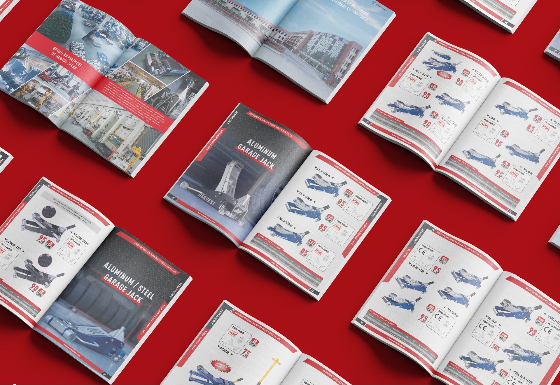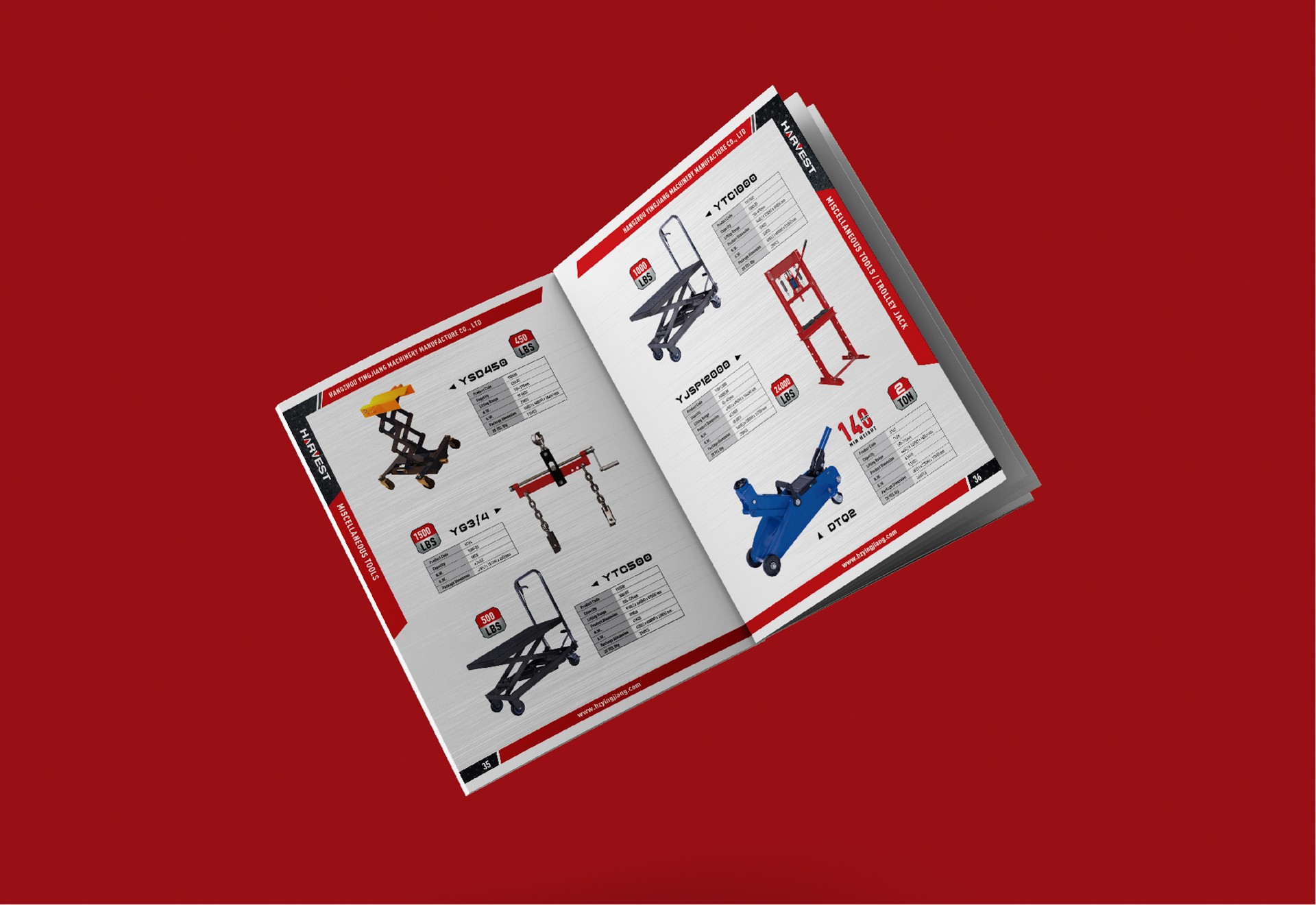 深藍色的封面背景,象征著盈江機械的穩重、專業與高品質。在封面的中央位置,我們看到了產品圖示,各頁頁邊運用紅色和黑色進行點綴,使得手冊更加醒目,引人注目,能夠有效吸引受眾觀看。