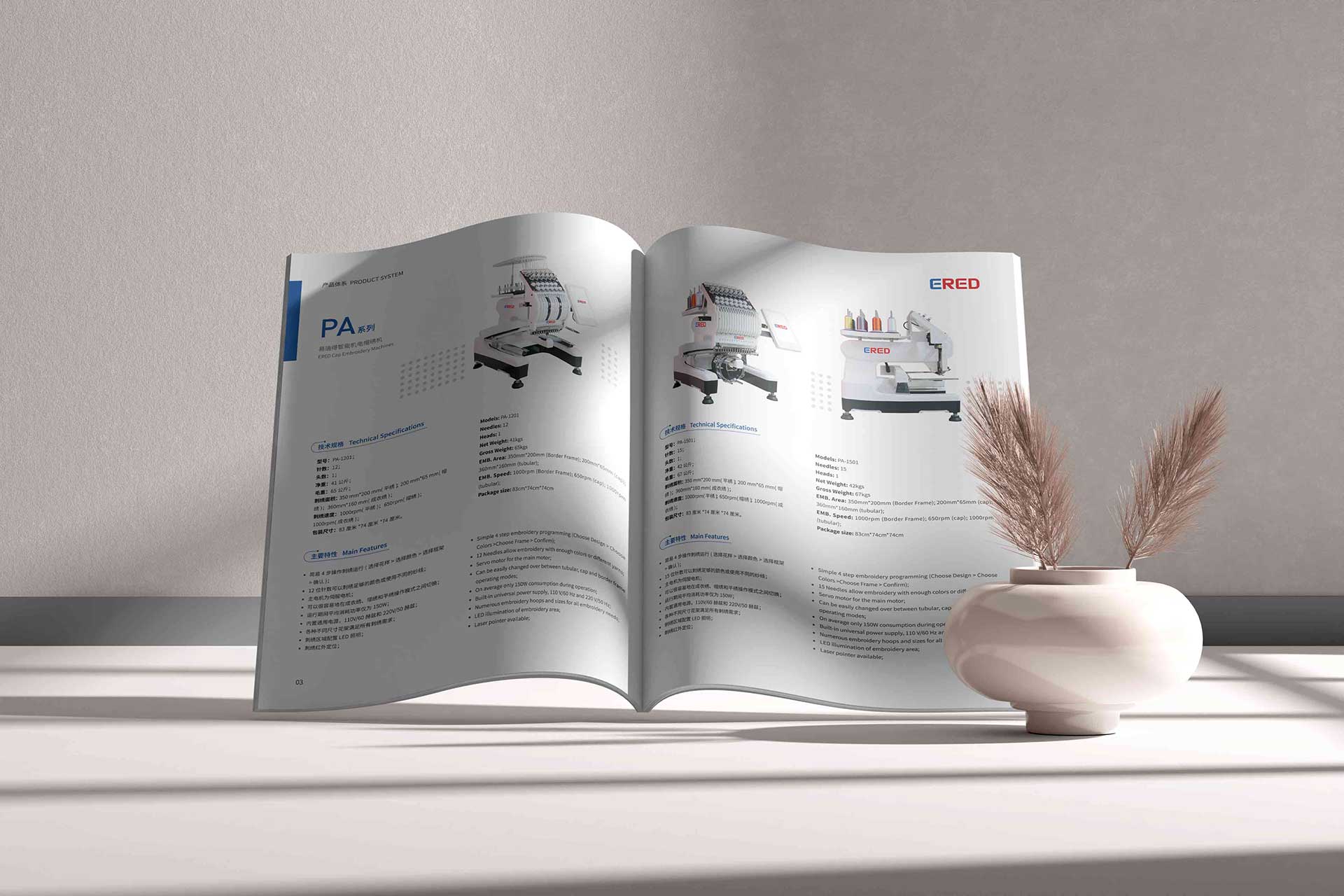 1、作為一家專注于縫制機械制造和產品研發、生產及銷售的現代高新科技企業,易瑞得重視研發創新,石特基于此,在本宣傳冊中以產品為重點,詳細介紹易瑞德的PA、PB、PC三大系列的產品參數、特點及優勢,為產品提供全面的信息,展示企業的實力。