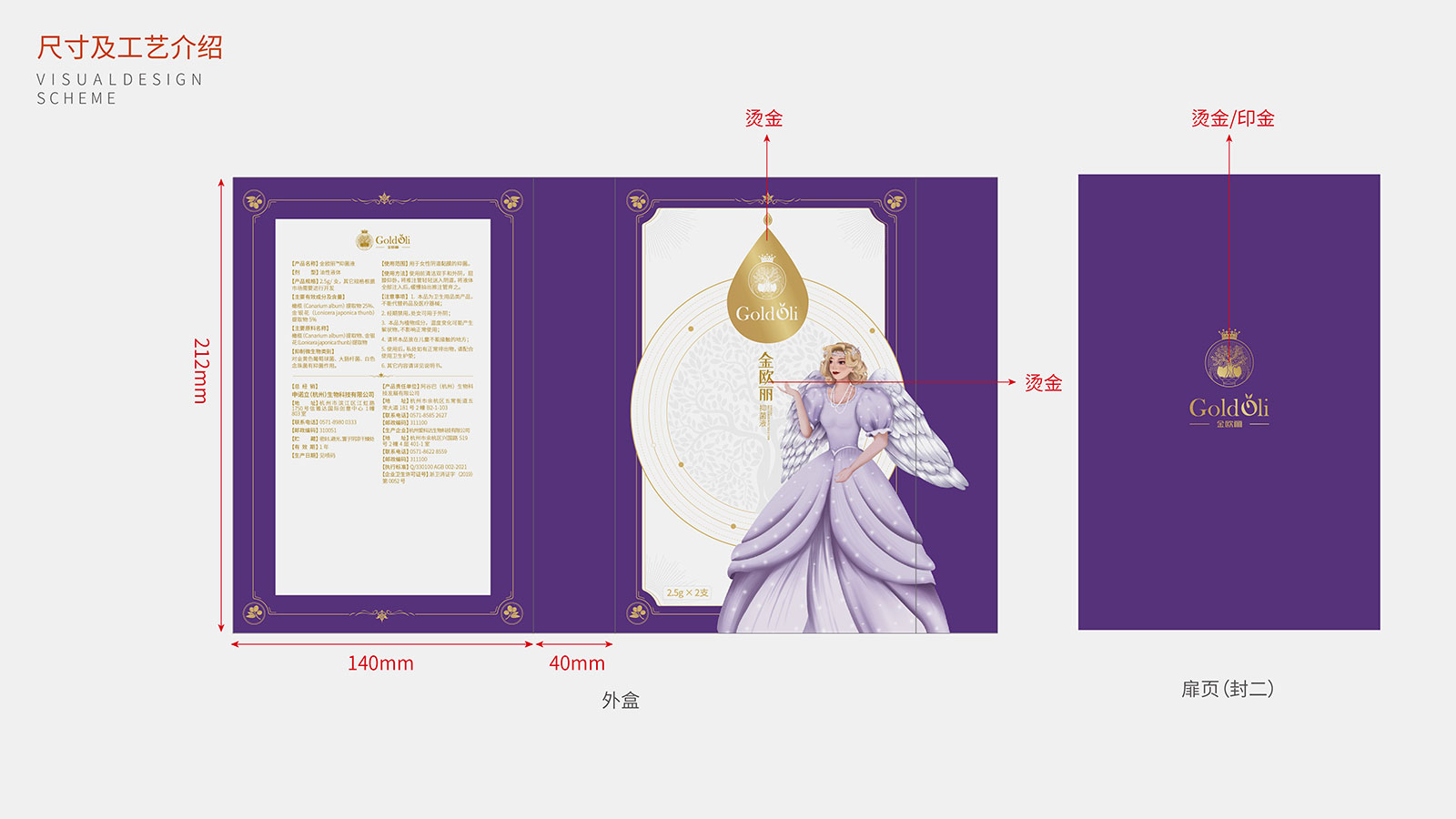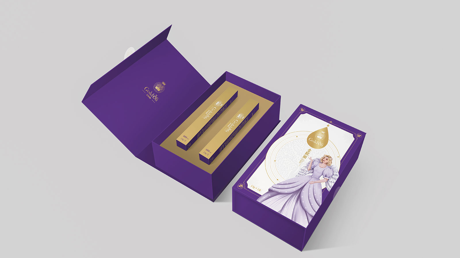 石特在創意思考之前,針對品牌進行全維調研與洞察,對現有包裝進行全面診斷分析,提煉出產品核心主張——每個女人都是自己的公主,并以此為發散點,以公主的IP人物形象進行畫面創作,同時包裝畫面突出風格鮮明的西班牙王室元素,加強產源地背書及產品核心賣點凝練。包裝運用女性紫與尊貴金的色彩進行渲染,時尚醒目,記憶點十足。細細品味,包裝處處體現尊貴與呵護,整體來看,包裝解決了金歐麗品牌與受眾利益訴求之間的溝通不順的問題,以市場化、差異化的表現手法將品牌展現的淋漓盡致,獲得客戶一致好評!