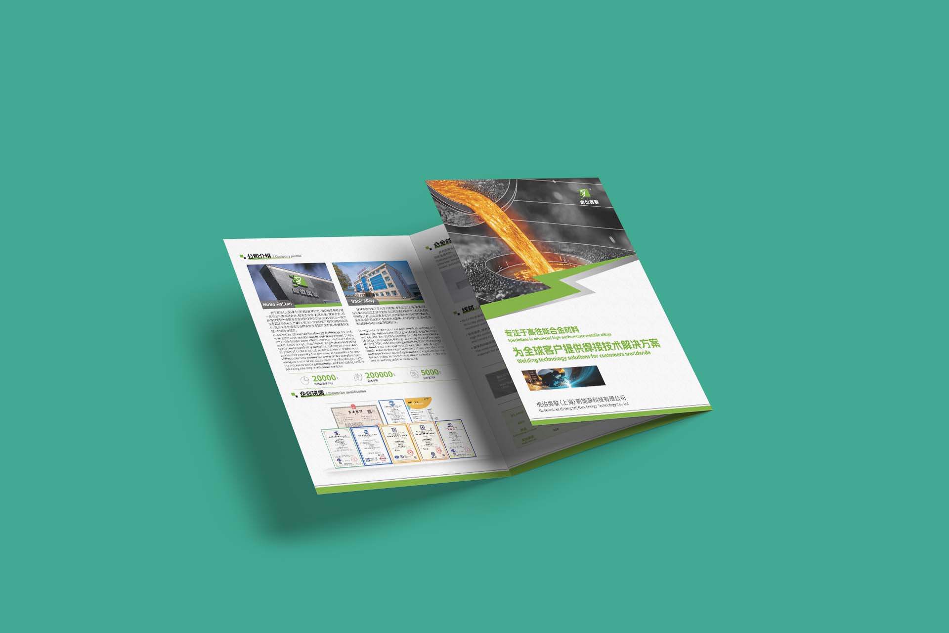 石特廣告策劃攜手虎伯奧聯(上海)新能源科技有限公司,聚焦其新能源業務,打造三折頁宣傳畫冊。以 “專注新能源合金材料,為全球客戶提供極致技術解決方案” 為核心,整合企業實力、產品體系、技術優勢等內容,助力企業傳遞品牌價值,拓展市場聲量 。
