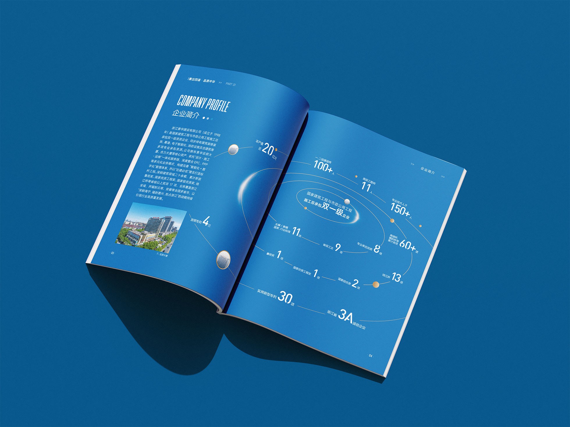 結(jié)構(gòu)化信息設(shè)計(jì)與高效閱讀: 針對建筑行業(yè)信息量大的特點(diǎn),運(yùn)用清晰的信息層級、圖標(biāo)化歸納與數(shù)據(jù)圖表,將復(fù)雜的企業(yè)資質(zhì)、技術(shù)參數(shù)等內(nèi)容進(jìn)行可視化處理,極大提升了畫冊的可讀性與信息檢索效率,方便客戶快速了解企業(yè)核心優(yōu)勢。