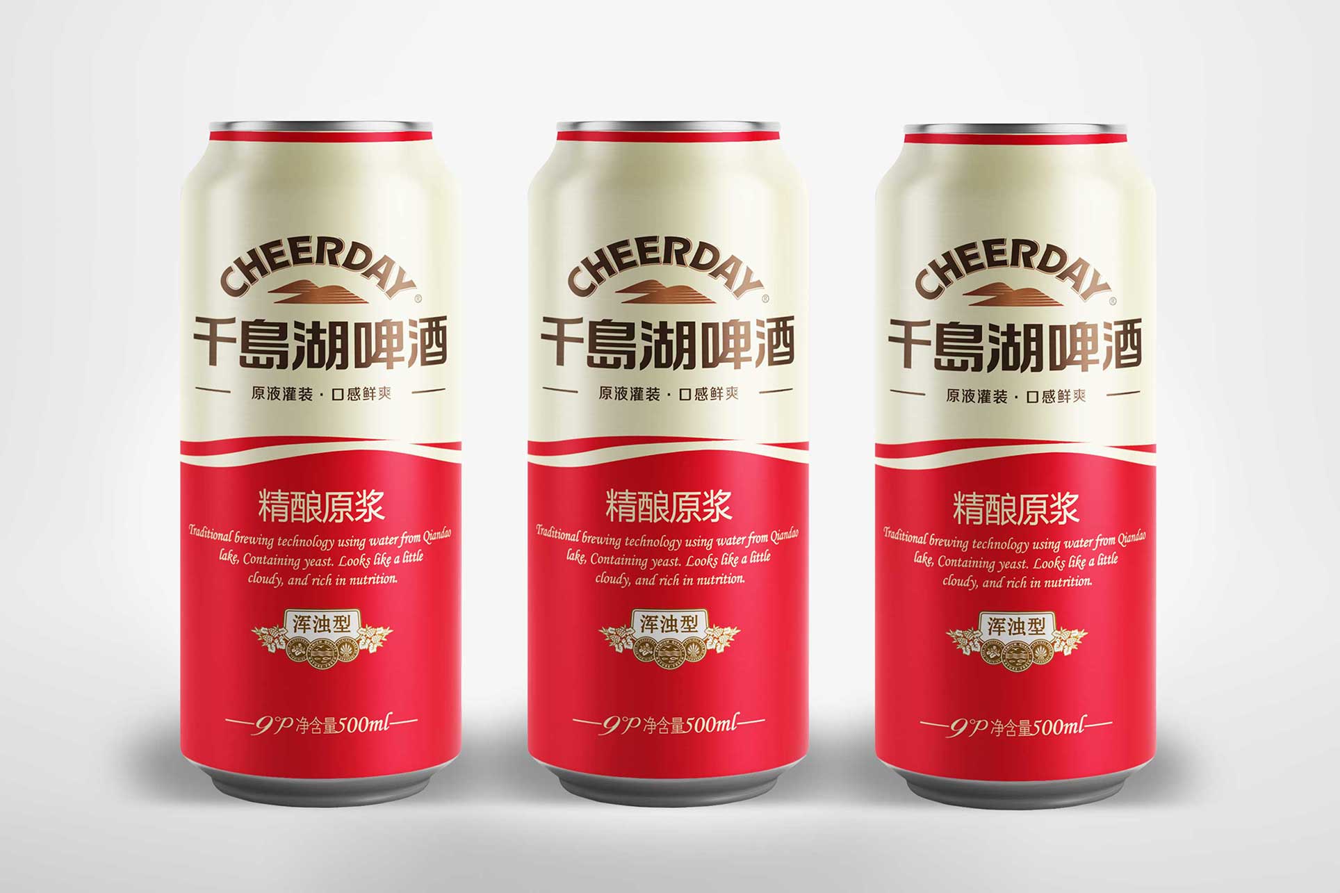 為能充分體現千島湖啤酒的特點及優勢,在包裝設計上,其主畫面在突出產品品名的同時,將千島湖、波浪等元素很好的進行融合;