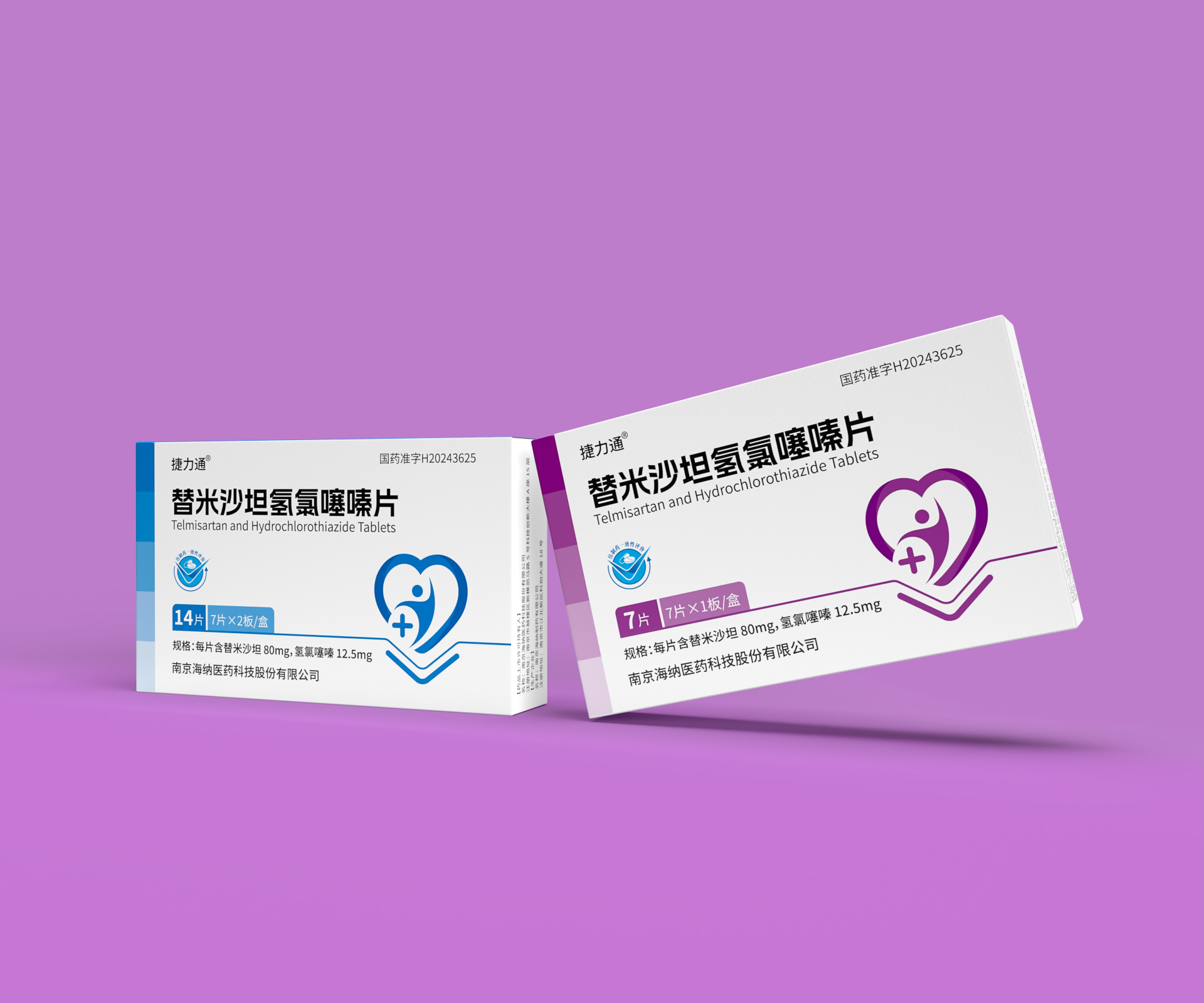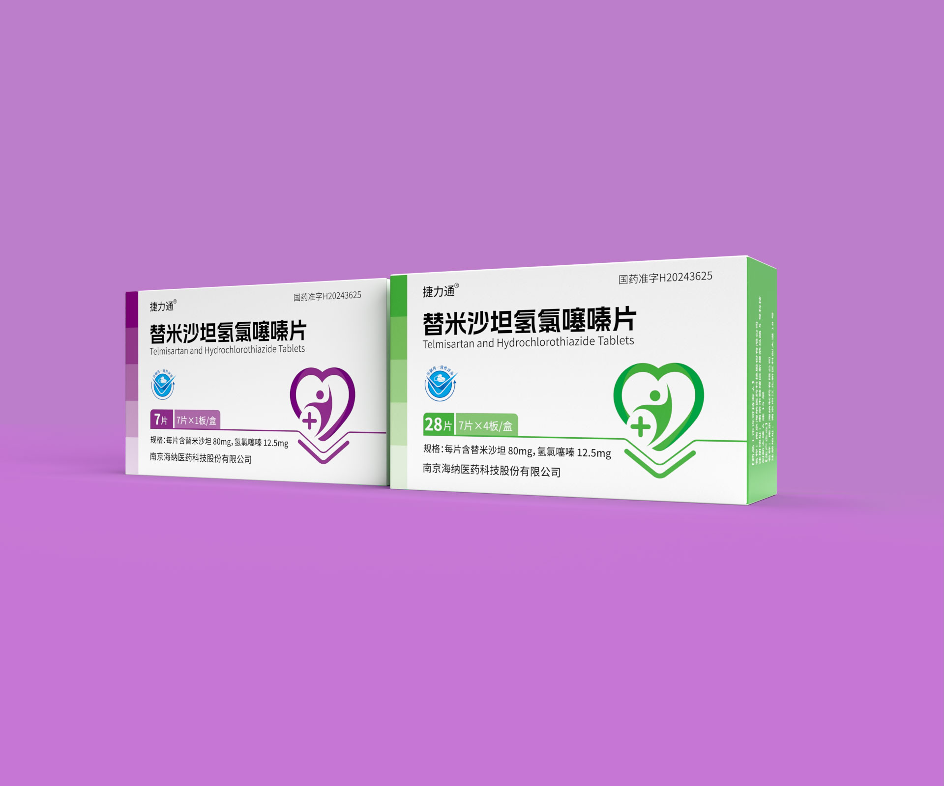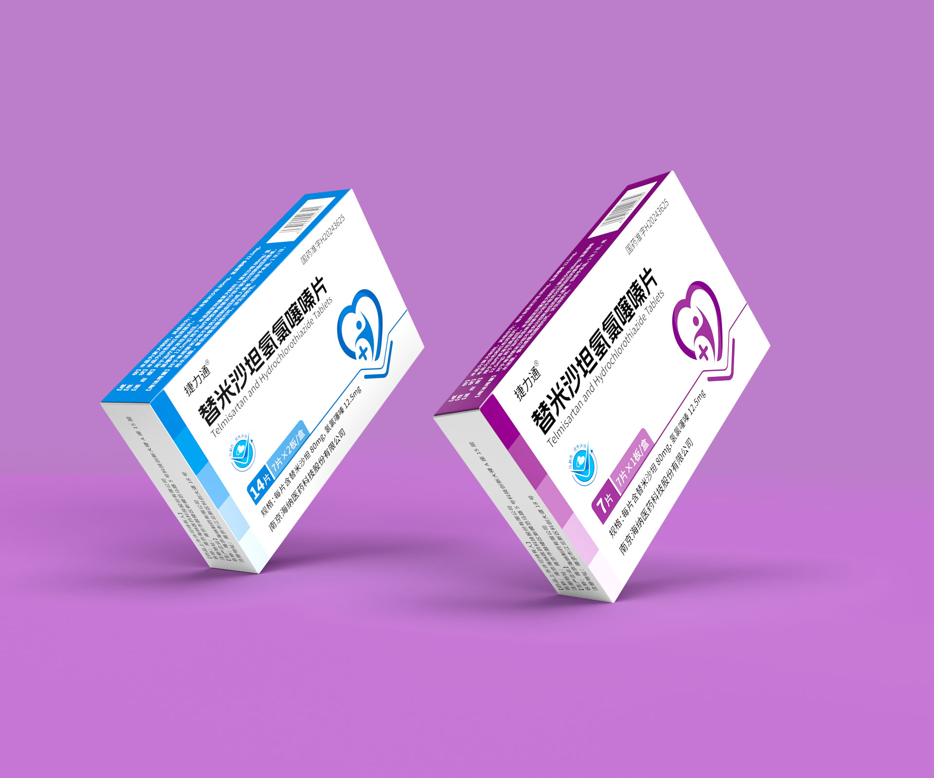 德捷(上海)生物醫藥科技有限公司的替米沙坦氫氯噻嗪片(規格:28片/盒、14片/盒及7片便攜裝)是一款用于治療原發性高血壓的復方制劑,具備多劑量靈活適配的臨床需求。針對其多規格產品線,石特大健康團隊以“精準識別、安全高效、品牌統一”為設計目標,打造了系列化藥品包裝解決方案,覆蓋差異化規格適配、防偽追溯、用戶場景細分及合規化設計,通過模塊化結構、家族化視覺體系與智能化生產適配,助力企業提升多規格產品管理效率與終端市場競爭力。