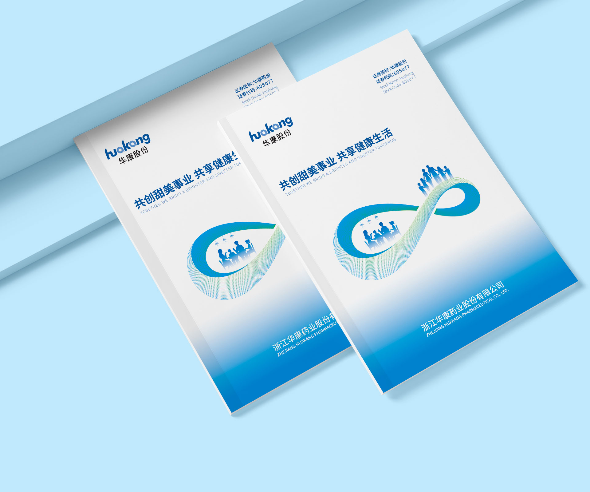 • 正面:突出品牌標識 “huakang”、核心 slogan “共創甜美事業 共享健康生活”,搭配簡約圖形符號,快速搶占受眾視覺焦點,強化品牌記憶;